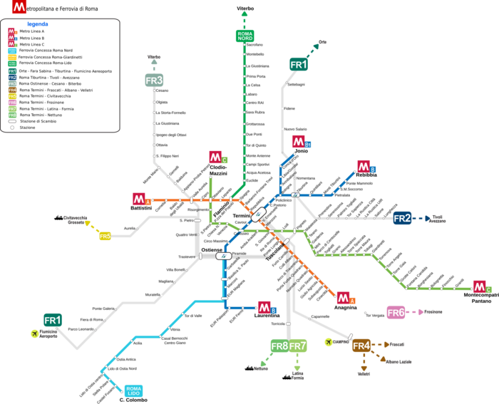 Отличительной особенностью римского метро является тот факт, что в его составе находятся не только подземные линии, но и обычные наземные электрички.