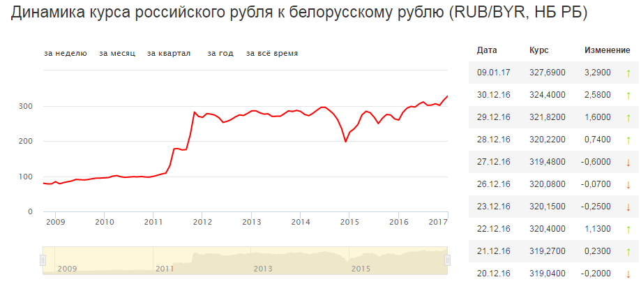 | Обменный курс | Белорусских рублей (BYB / BYR) за доллар США — 1,9 (оценка 2017 года) 2 (оценка 2016 г.) 2 (оценка 2015 г.)) 15 926 (оценка 2014 г.) 10 224,1 (оценка 2013 г.) | Российских рублей (RUB) за доллар США — 58,39 (оценка 2017 г.) 67,056 (оценка 2016 г.) 67.056 (оценка 2015 г.) 60,938 (оценка 2014 г.) 38,378 (оценка 2013 г.) |