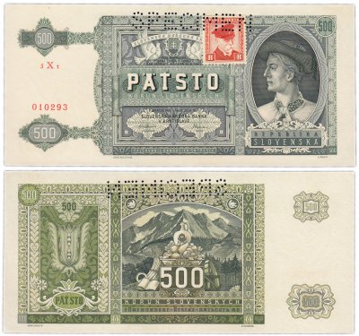 В июле 1945 года Словацкий национальный совет приказал чеканить словацкие банкноты и военные ваучеры номиналом 100, 500 и 1000 крон.