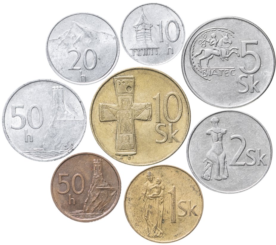Денежной единицей Словацкой республики до 31 декабря 2008 г. была словацкая крона (аббревиатура Sk и ISO-код SKK). В обращении находились следующие семь номиналов: 5000 Sk, 1000 Sk, 500 Sk, 200 Sk, 100 Sk, 50 Sk и 20 Sk.