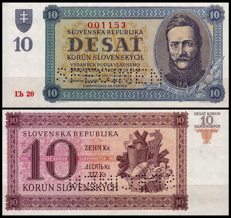 После создания Протектората Богемии и Моравии и провозглашения Словацкой Республики постановлением правительства в силу закона была введена новая валюта – словацкая крона – с 4/ 4/1939. В начале лета 1939 года Словацкий национальный банк изымает из обращения дорогостоящие чехословацкие банкноты и заменяет их такими же банкнотами со штампом СЛОВАЦКОЕ ГОСУДАРСТВО. Также началась интенсивная подготовка к выпуску национальных банкнот и монет. Большая часть словацкой денежной системы была завершена летом 1942. Дизайны были получены в основном на анонимных конкурсах. Монеты чеканились на Кремницком монетном дворе, а бумажные деньги первоначально печатались за границей, а с 1943 года также в типографии Neografia в Мартине.
