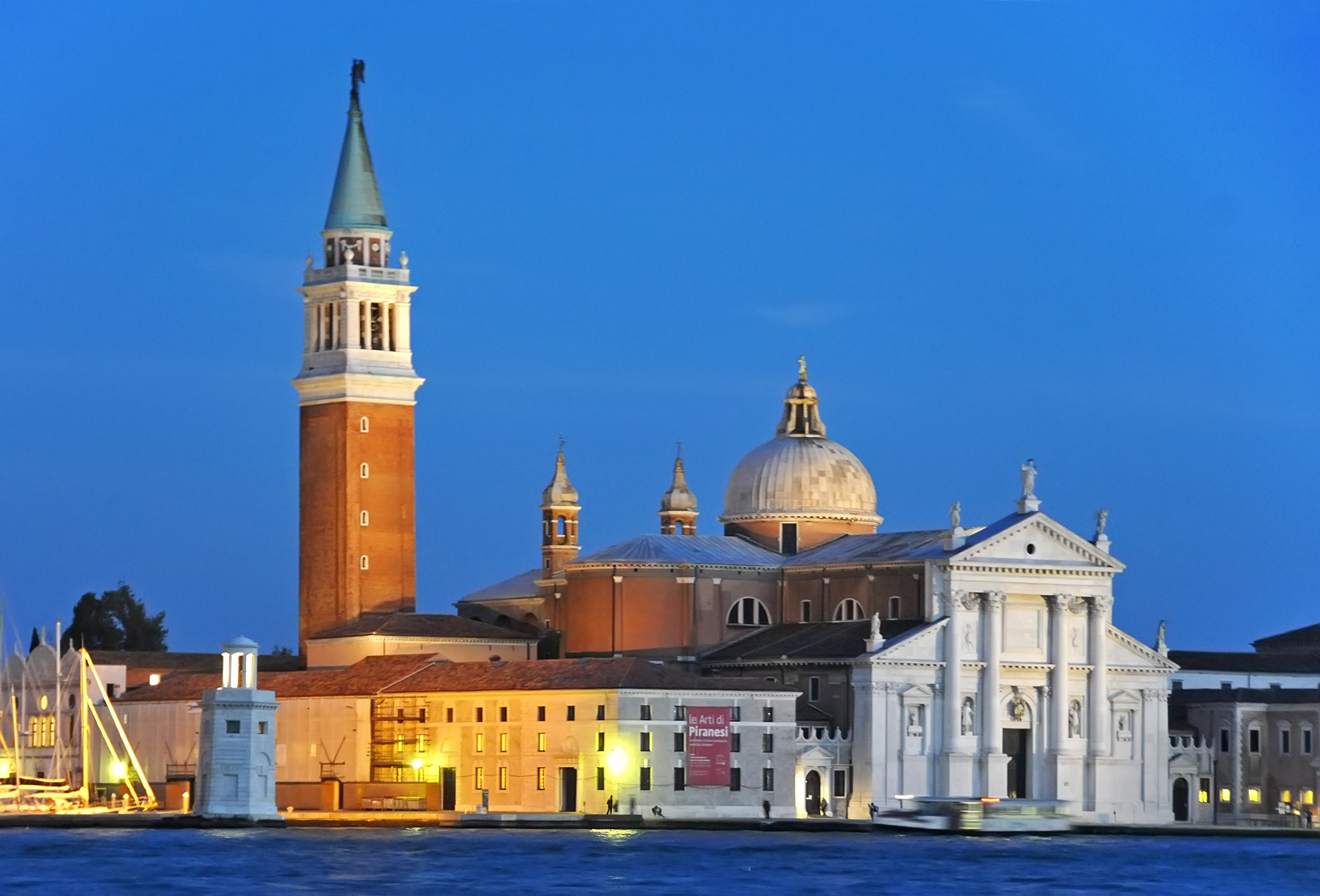 здания самой Пьяцетты. Расположен на маленьком острове через лагуну от площади Пьяцетта недалеко от на вершине Джудекки, церковь Сан-Джорджо была первой церковью, построенной Палладио. разработан полностью от начала до конца. На острове было с 790 года здесь располагалась церковь, посвященная святому Георгию. |