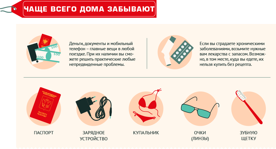 Наконец, убедитесь, что вы не забыли упаковать свои обычные дорожные принадлежности: