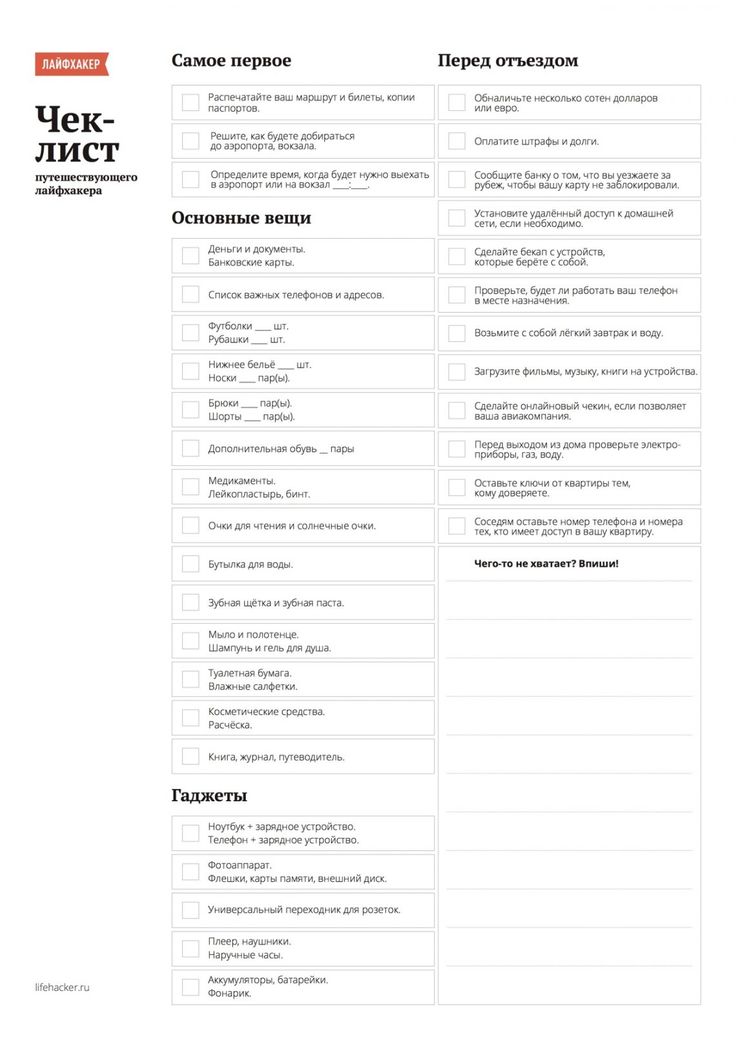 Сборы в путешествие подразумевают не только — что взять с собой в поездку, но и куда это все сложить. В одних случаях хватит небольшого рюкзака, в других — нужен вместительный чемодан на колесах. Для экскурсий на месте удобно захватить мини — рюкзак или легкую сумку. Составив список, вы будете представлять объем вещей для путешествия.