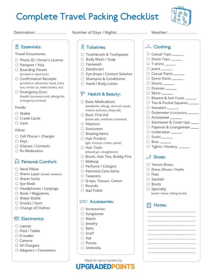 Начните с этого контрольного списка вещей, которые необходимо упаковать для международных поездок: