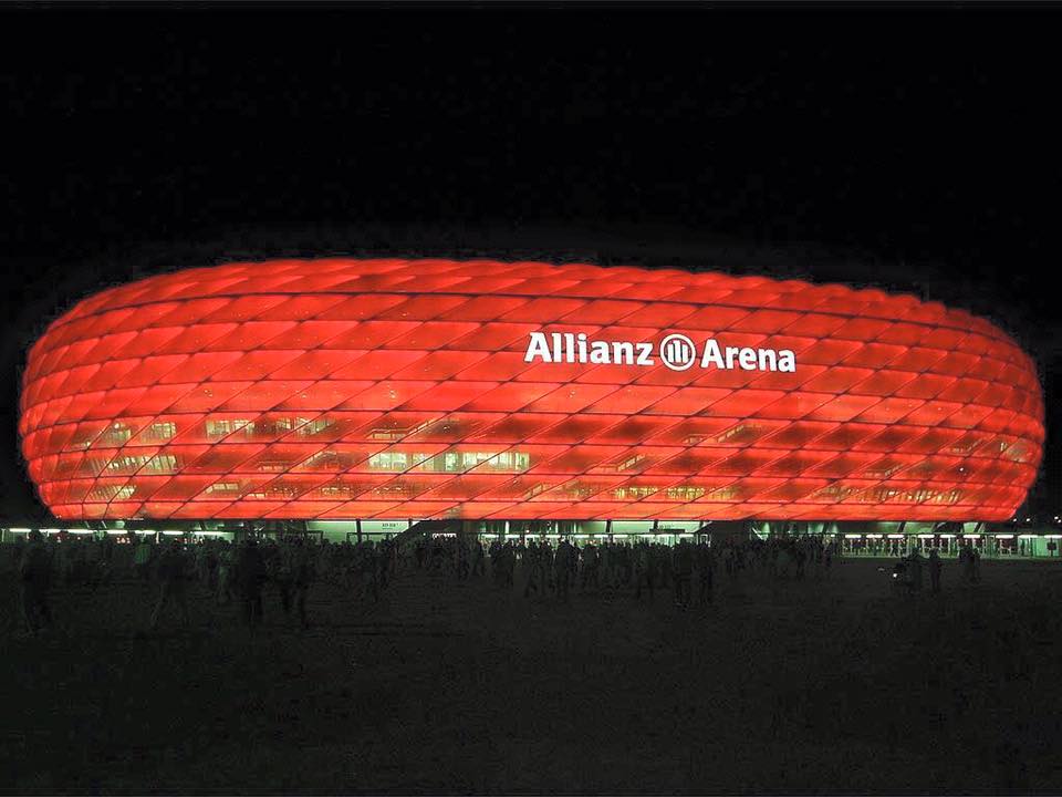 «Альянц Арена» подсвечена красным, когда на ней выступает «Бавария»; голубым — когда играл «Мюнхен 1860»; белым — когда играет сборная Германии