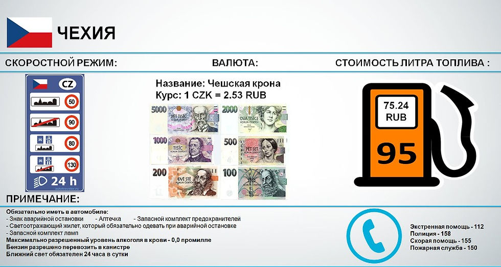 Решили отправиться на автомобиле в Чехию? Посмотрите, сколько сегодня стоит топливо в Европе. Не будет лишним дотошно подсчитать предстоящие расходы на путешествие на машине, включая дорожные сборы в странах Европы. Ниже цены на наиболее ходовые бензин марки 95, дизельное топливо и пропан в виде таблицы, которую я стараюсь регулярно обновлять.
