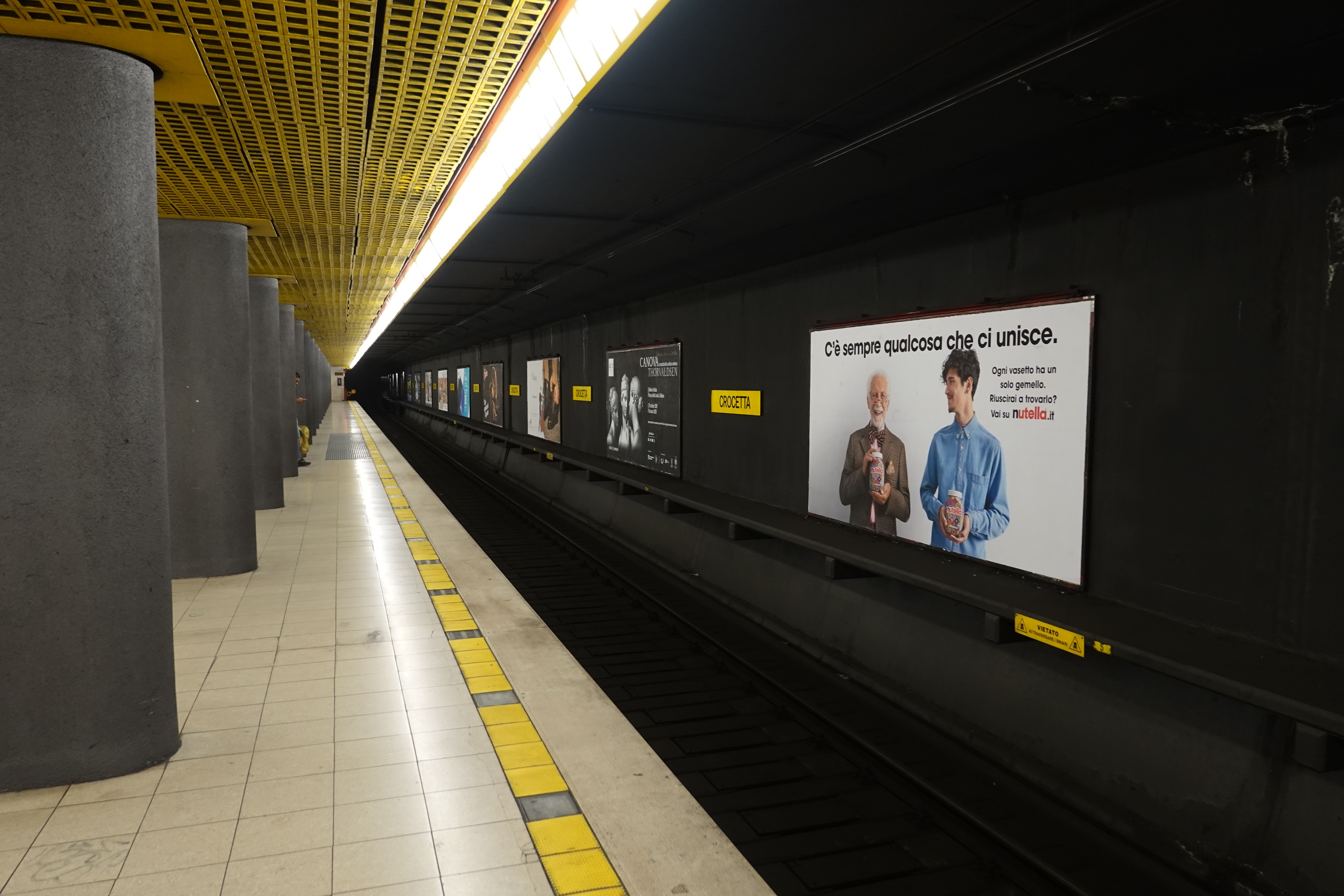 Выход из метро обозначен черными табличками с надписью «USCITA»