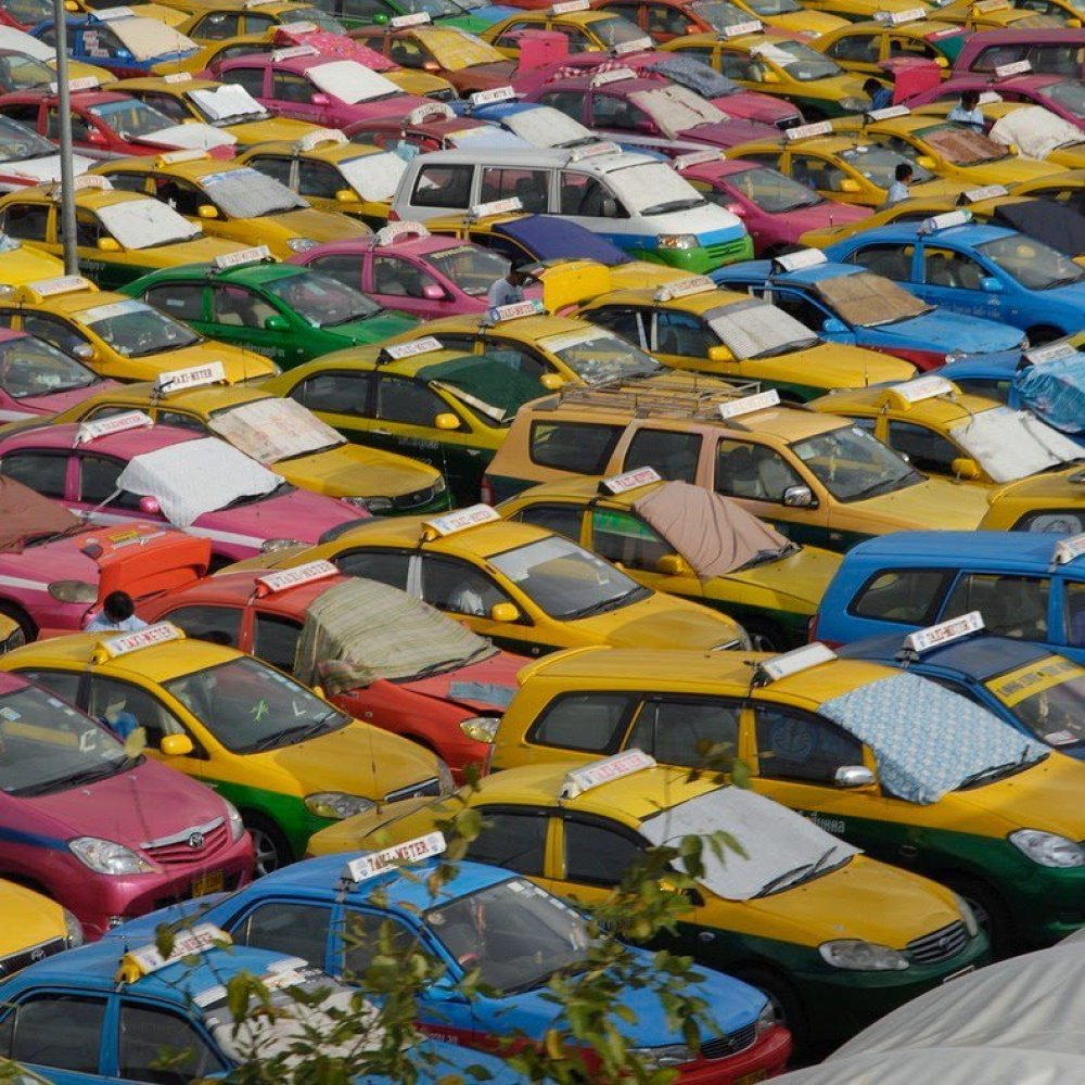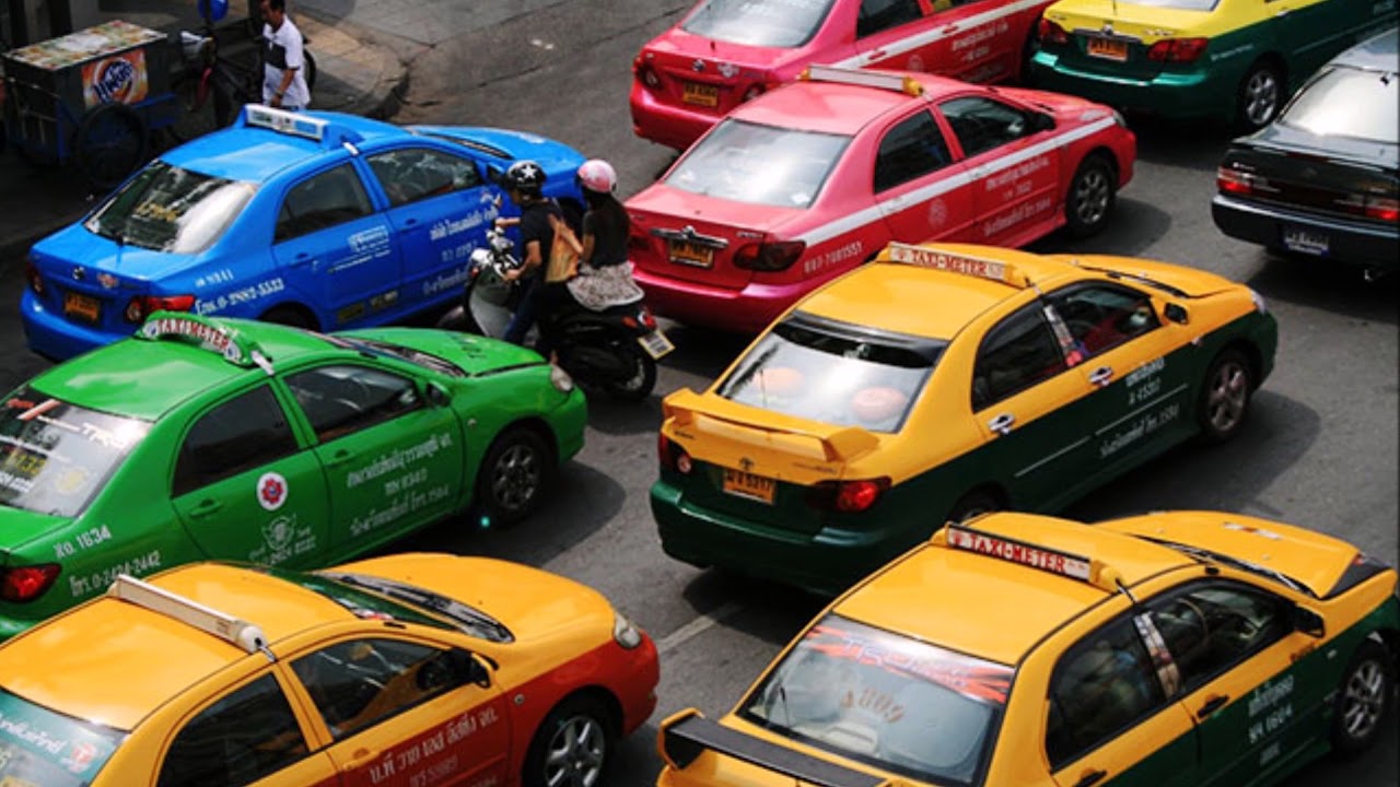 Бангкокские такси бывают разных ярких цветов, включая оранжевый, розовый, синий, зеленый и желтый. Цвета представляют разные компании такси, и вы можете отметить любую из них, при условии, что в переднем окне горит красный световой индикатор наемного автомобиля.