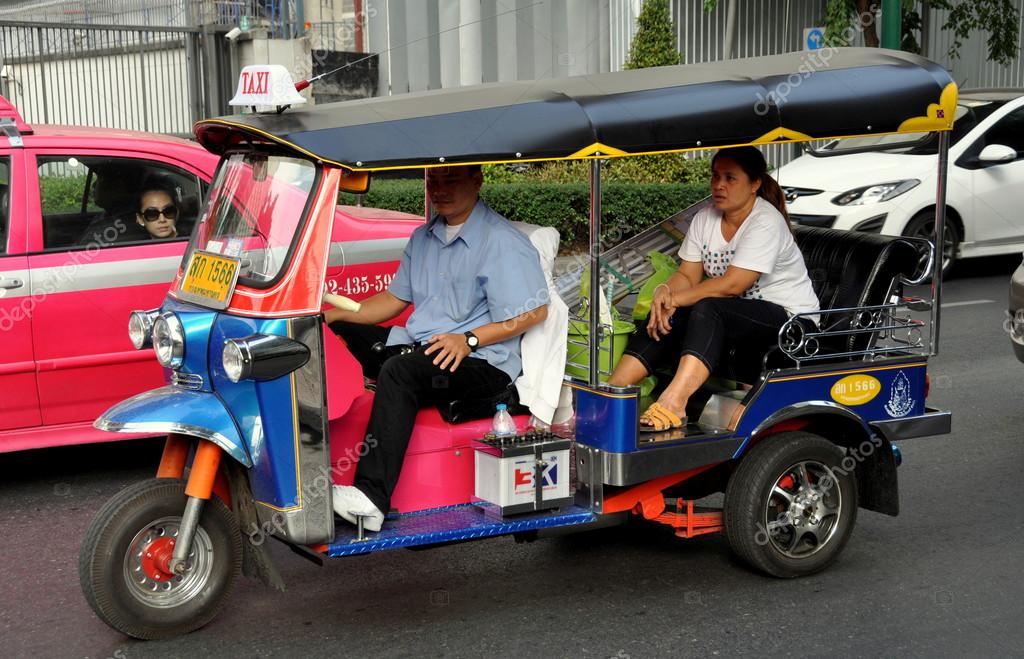 Тук-туки (здесь мы имеем в виду не сонг-тео с двумя лавочками по сторонам, а именно тук-туки, рассчитанные на 2-3 пассажиров) придают транспортному потоку в Тайланде исключительный колорит: необычные, разной формы, абсолютно неограниченные в цветовом решении. На крыше часто имеют табличку «Taxi».