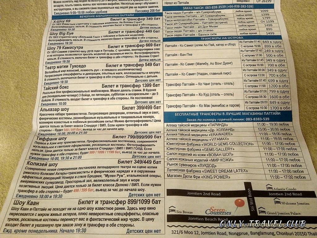 | Паттайя — Лаем Чабанг | 700 бат | 1000 бат | 1300 бат |