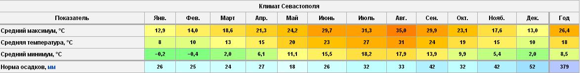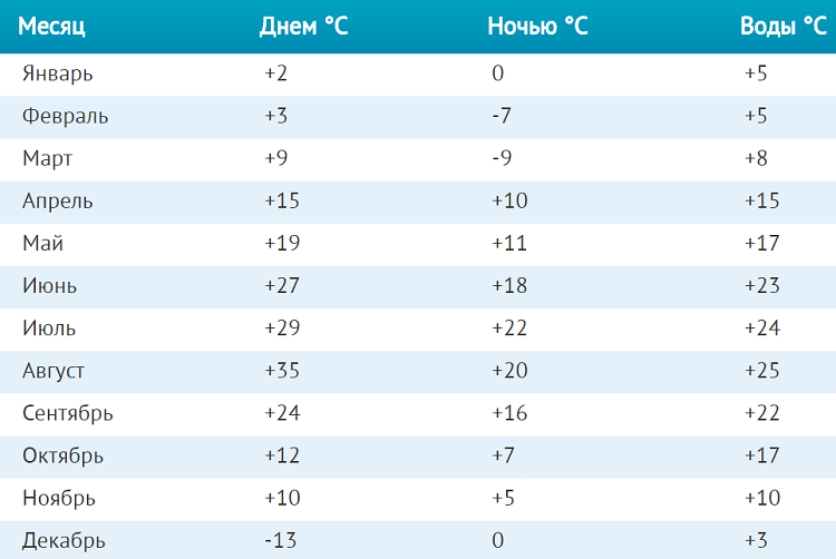 Таблица значений температуры воды в Тивате