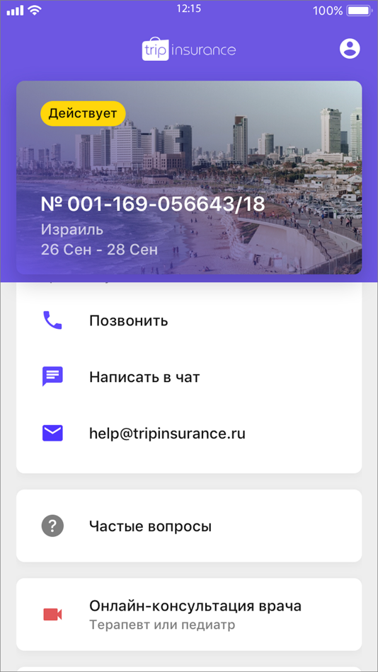 Нужно лишь установить наше приложение (iOS, Android). Через приложение также можно сделать бесплатный звонок в сервисный центр для организации вам помощи в местной клинике.
