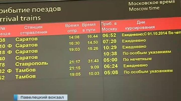 Расписание поездов по станции Москва Павелецкий вокзал на сегодня и завтра с изменениями: