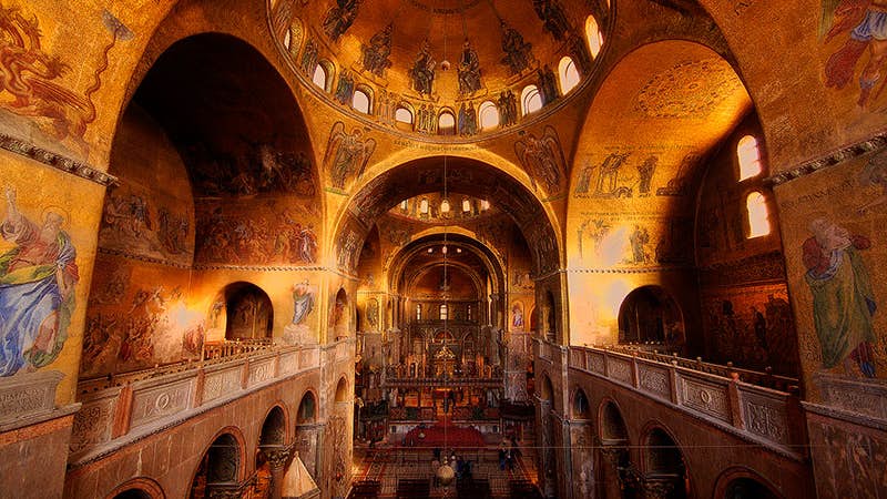 Basilica di San Marco a Venezia), собор Венеции, является самой известной из церквей города и одним из самых известных образцов византийской архитектуры. Мост Вздохов — один из многих мостов в Венеции, но пожалуй, один из самых известных. Он получил свое название от шума, который раньше исходил от заключенных, которые использовали мост, чтобы пройти из тюрьмы в суды во Дворце дожей.