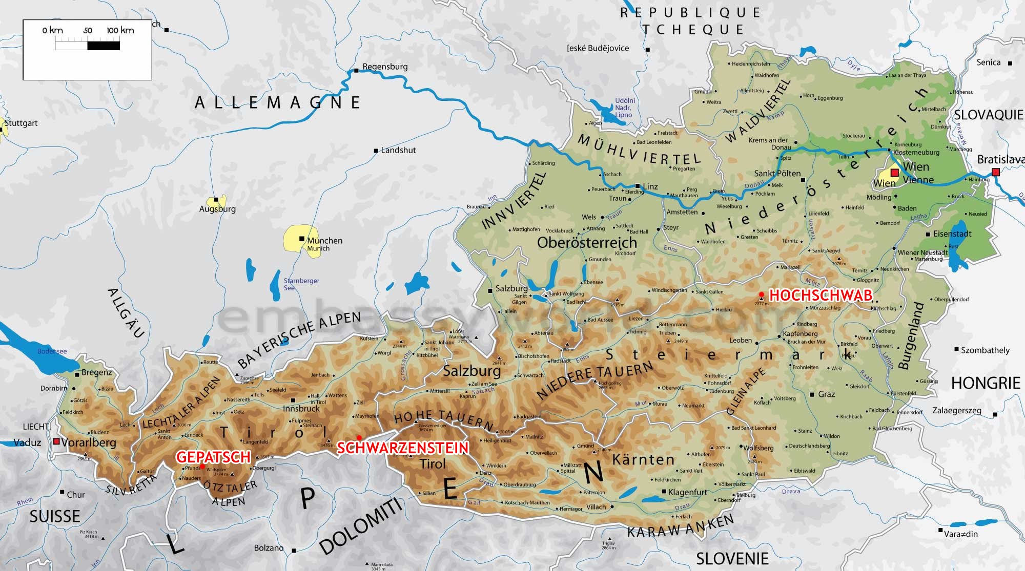 Вена на карте Австрии