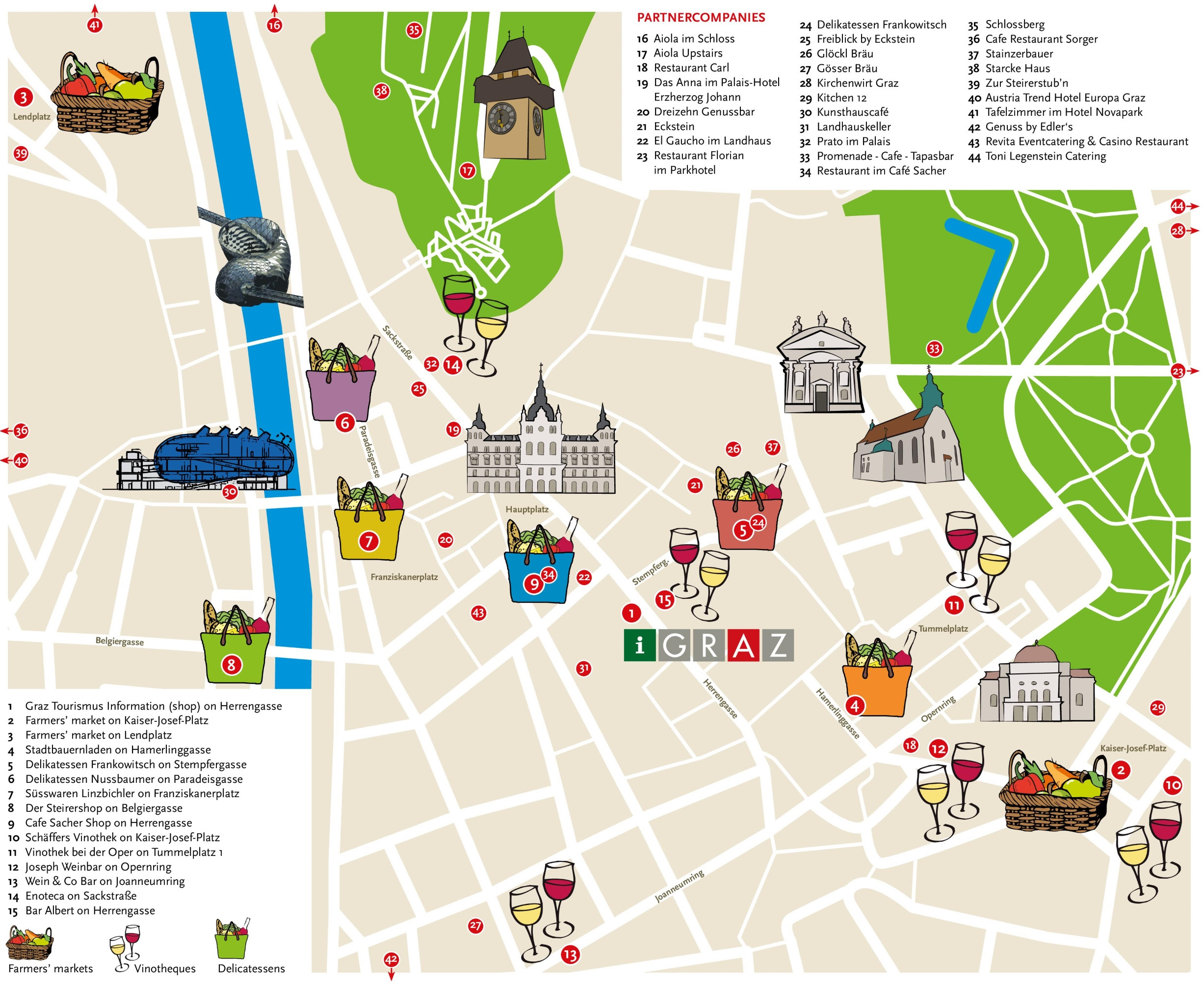 На обед и ужин вас приглашают рестораны австрийской и европейской кухни.