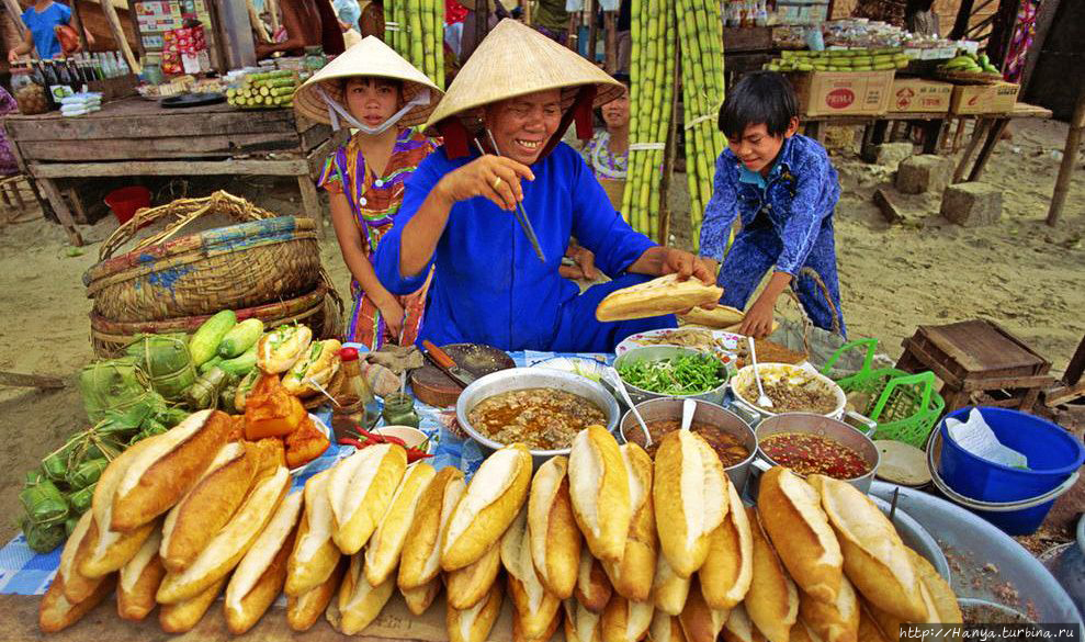 В Нячанге люди часто продают Banh Mi (хлеб) с Cha ca. Banh mi свежеиспеченный, еще горячий и хрустящий. Сладость и пряность ча ка обещают стать любимым лакомством на завтрак для всех туристов.