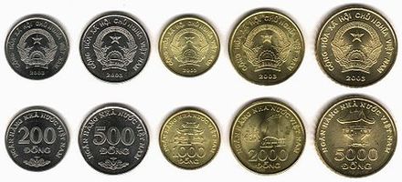 «Монета» переводится как «су» (встречается вариант «донг су»). Встречаются номиналом в 200, 500 (представляют собой сталь, покрытую медью), 1000, 2000 или 5000 (три номинала из никелированной стали). Все редко встречаются в обороте из-за многочисленных инфляций и девальваций. Пользуются большой популярностью у нумизматов.