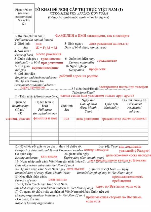 Образец заполнения анкеты для визы во Вьетнам стр. 1