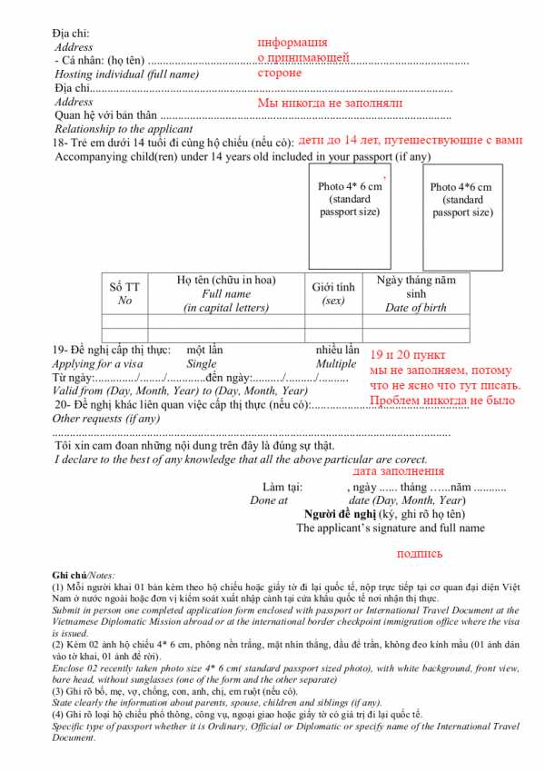 Образец заполнения анкеты для визы во Вьетнам стр. 2