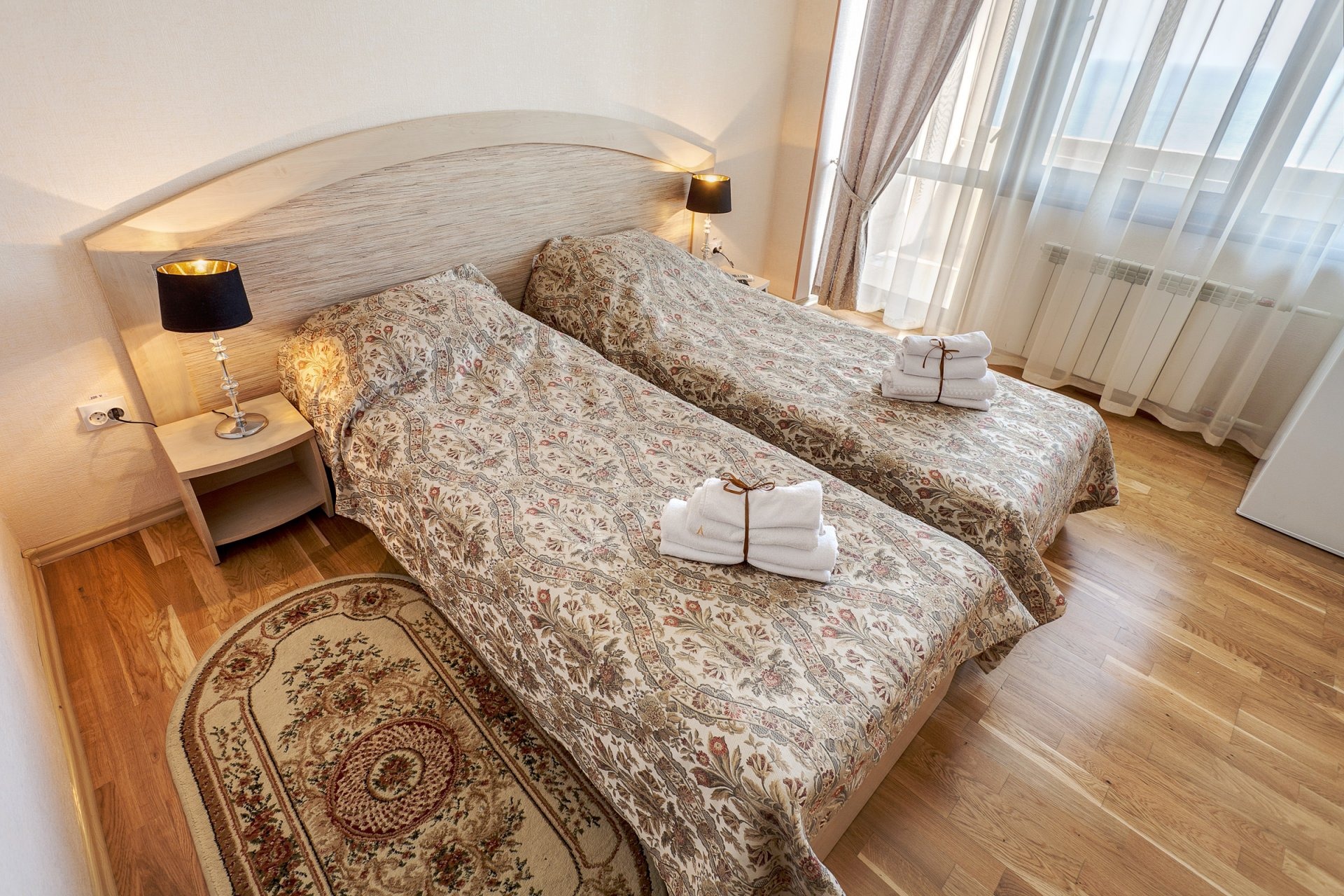 Номера этой категории отлично подойдут для комфортного размещения небольшой семьи. Интерьер номера создает атмосферу спокойствия и уюта.